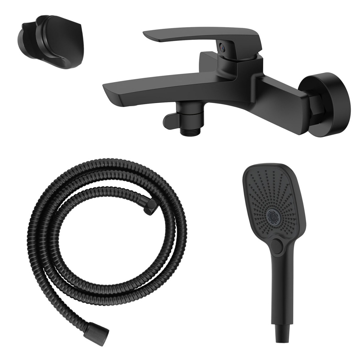 Смеситель для ванны Azario Conda AZ-K3011B с душевым гарнитуром, материал латунь, цвет чёрный матовый.