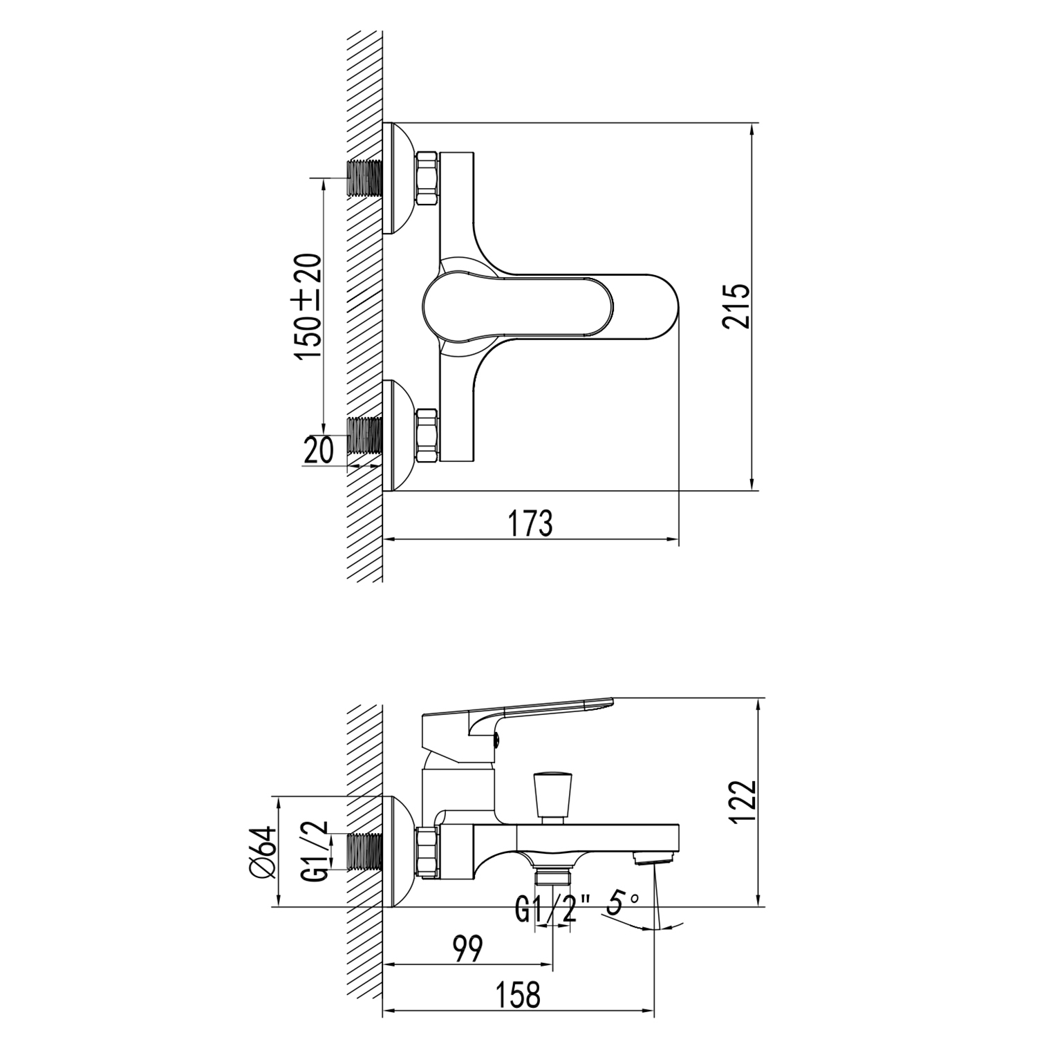 Описание смеситель для ванны Azario AZ-WWK238155C