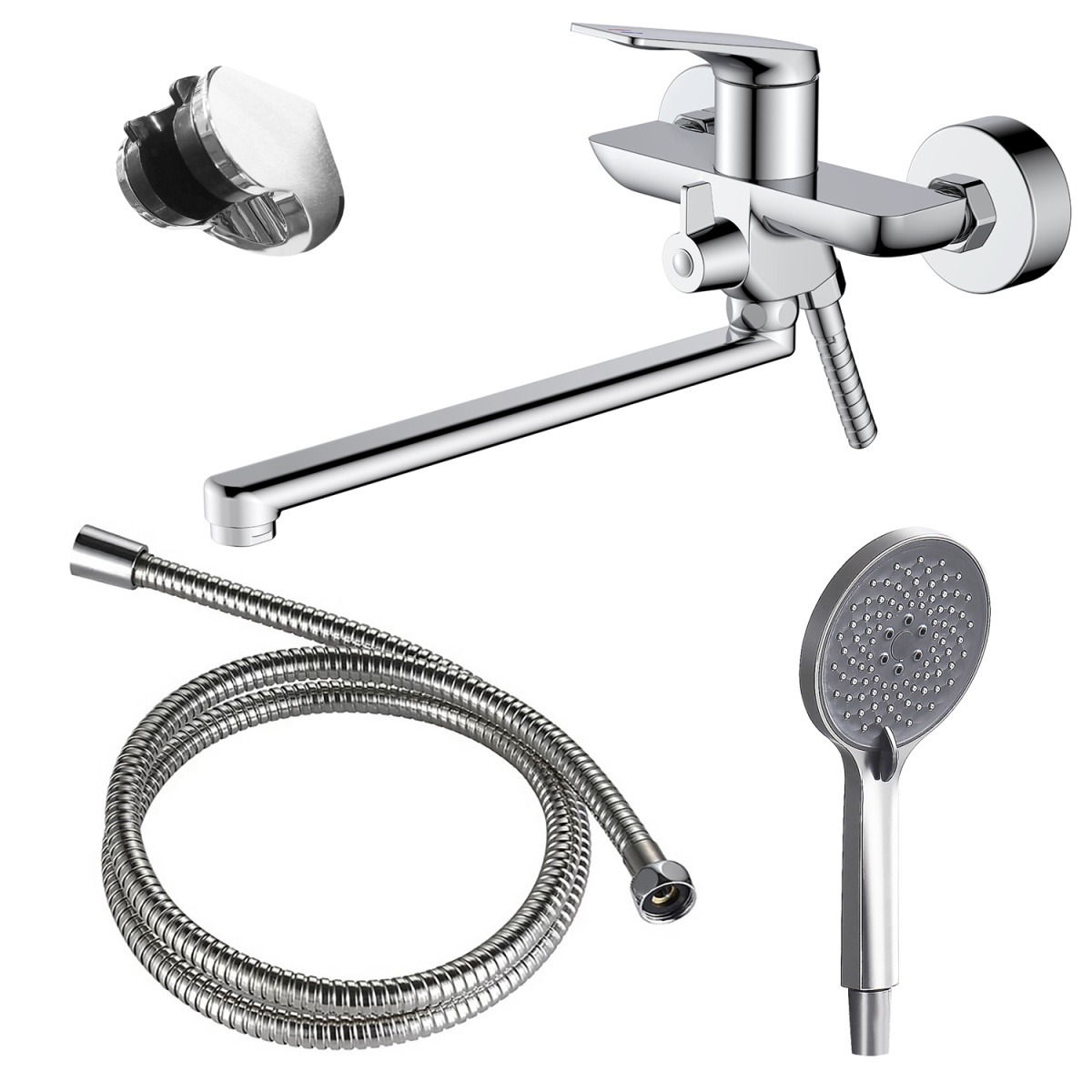 Смеситель для ванны Azario Lursy AZ-K1749 с душевым гарнитуром и длинным изливом, материал латунь, цвет хром.