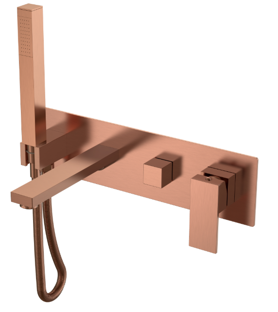 Смеситель для ванны Boheme Qubic 474-2-CB, скрытая часть в комплекте, материал латунь, цвет брашированная медь.