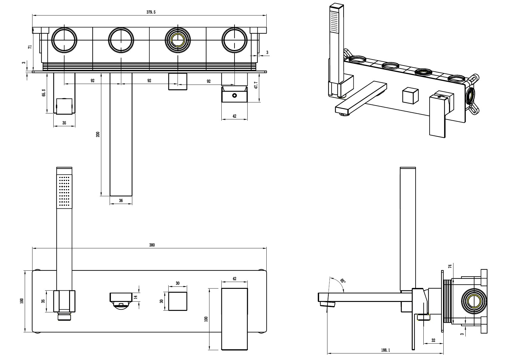 Смеситель для ванны Boheme Qubic 474-2-CB (со скрытой частью) брашированная медь