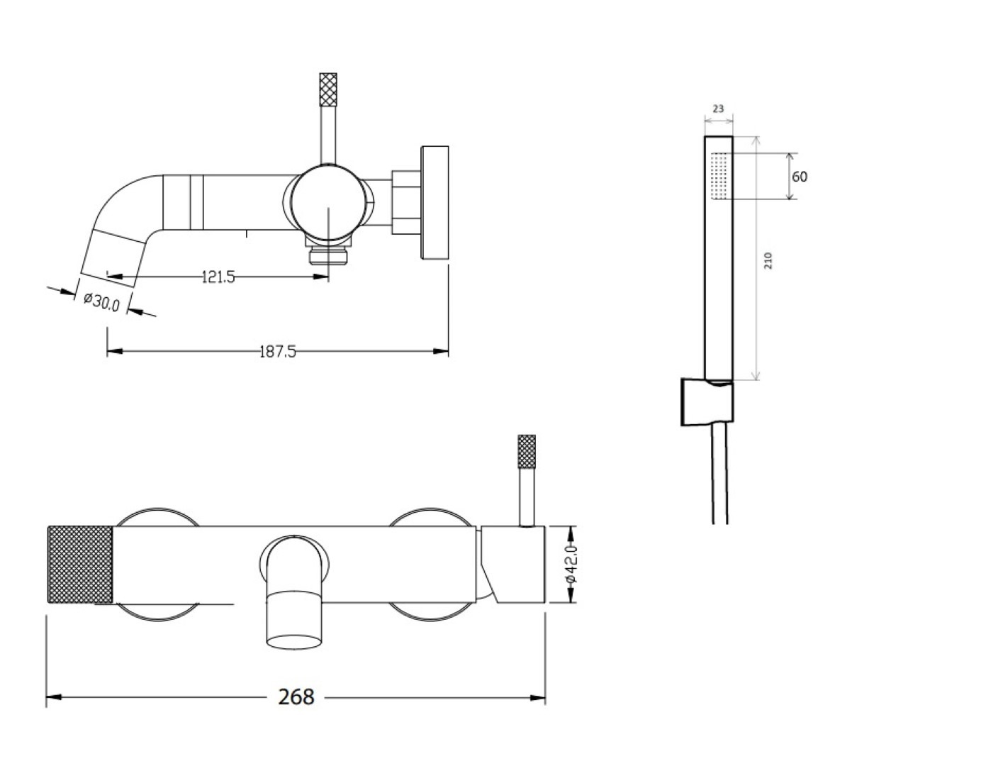 Смеситель для ванны Boheme Uno 463-CB с душевым гарнитуром, материал латунь, цвет брашированная медь.