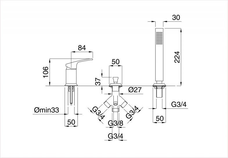 Характеристики смеситель на борт ванны Cezares (LEGEND-BDM-03/24)