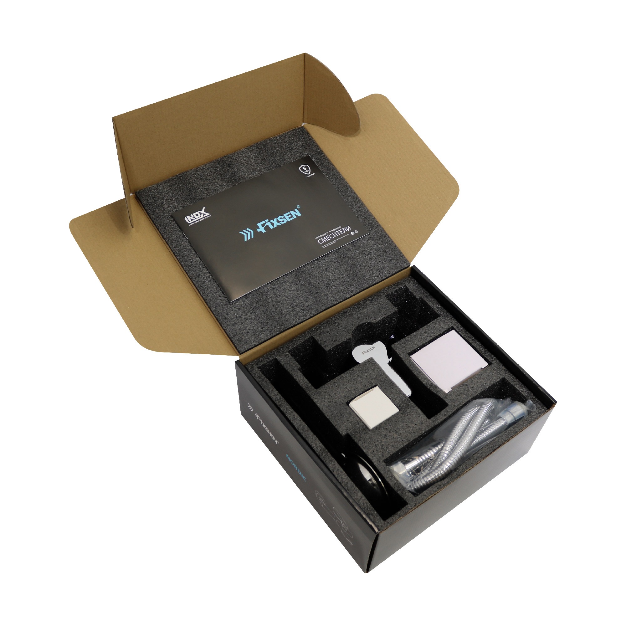 Смеситель для ванны Fixsen NORDIC FX-8803 с душевым гарнитуром, материал нержавеющая сталь, цвет хром.