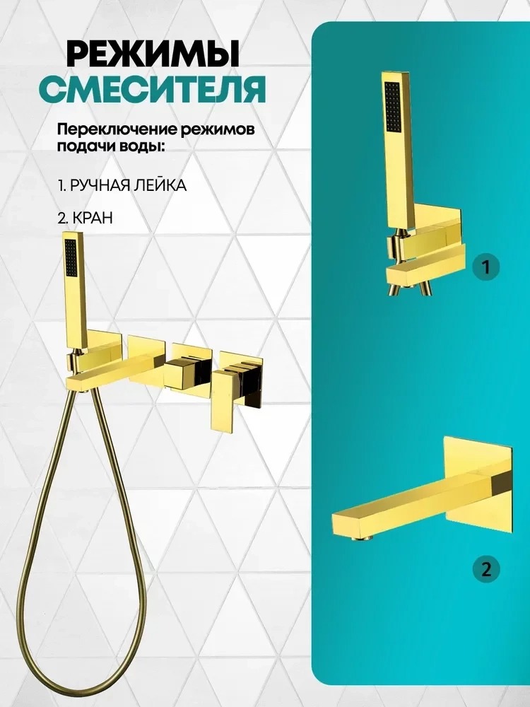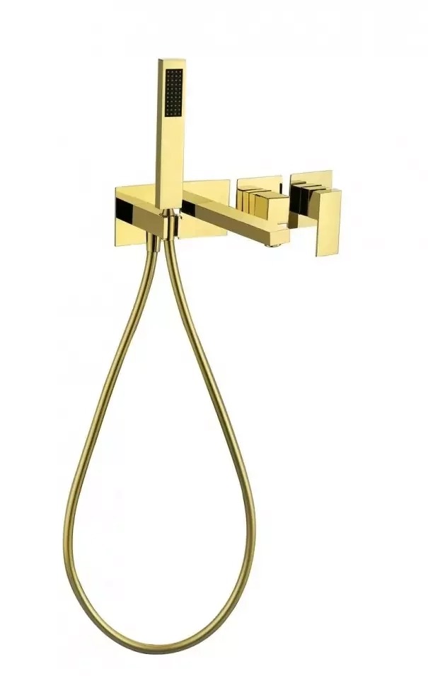Смеситель для ванны Grocenberg GB5060GO с керамическим картриджем Kerox (Венгрия) и душевым гарнитуром, материал латунь, цвет золото.