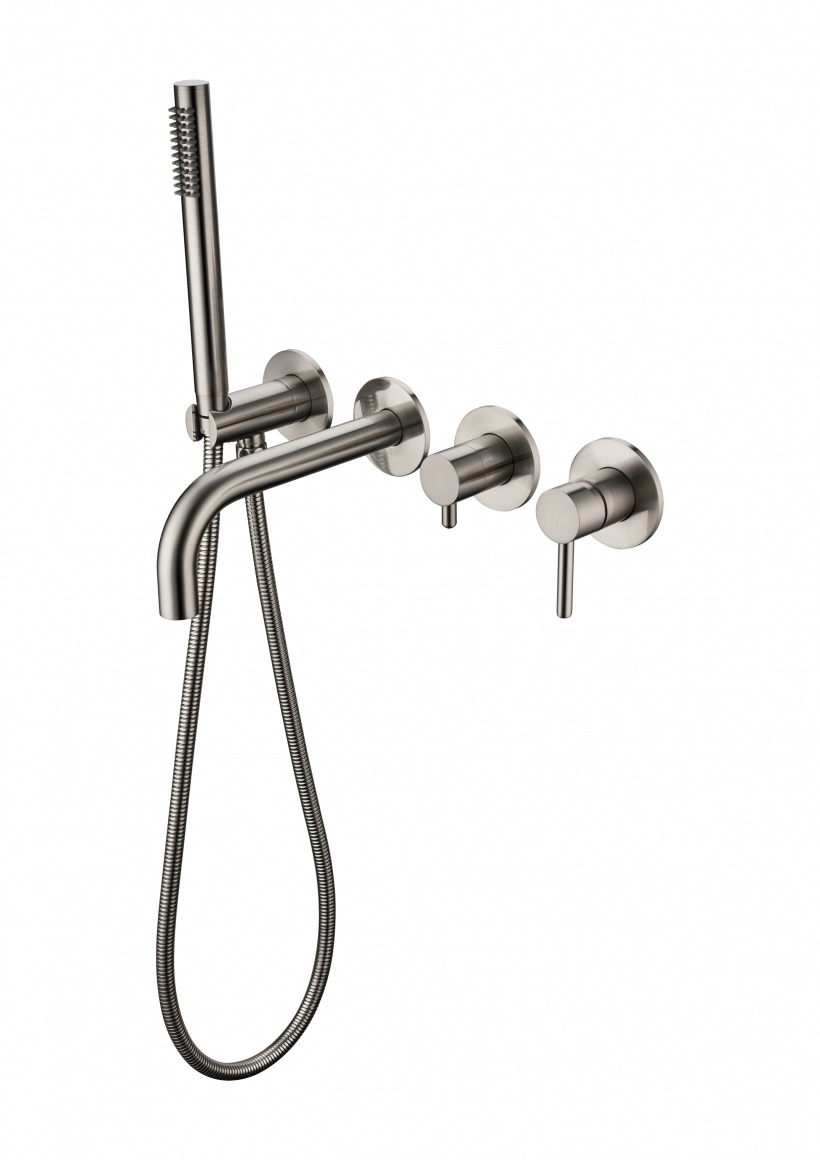 Смеситель для ванны Grocenberg GB5070NK с душевым гарнитуром, материал латунь, цвет никель.