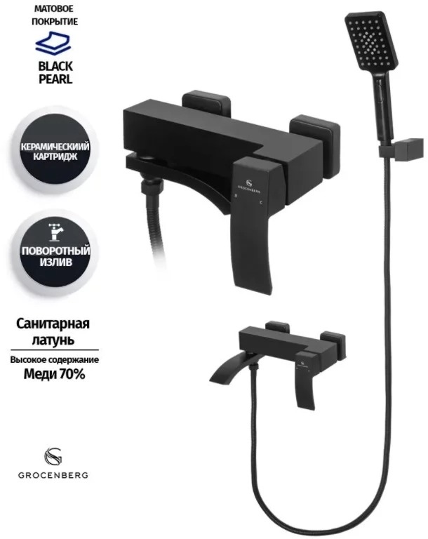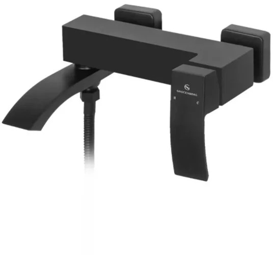 Смеситель для ванны Grocenberg GB8007BL с душевым гарнитуром, материал латунь, цвет чёрный матовый.