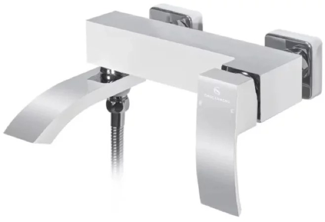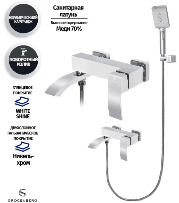 Смеситель для ванны Grocenberg GB8007WC с душевым гарнитуром, материал латунь, цвет белый хром.