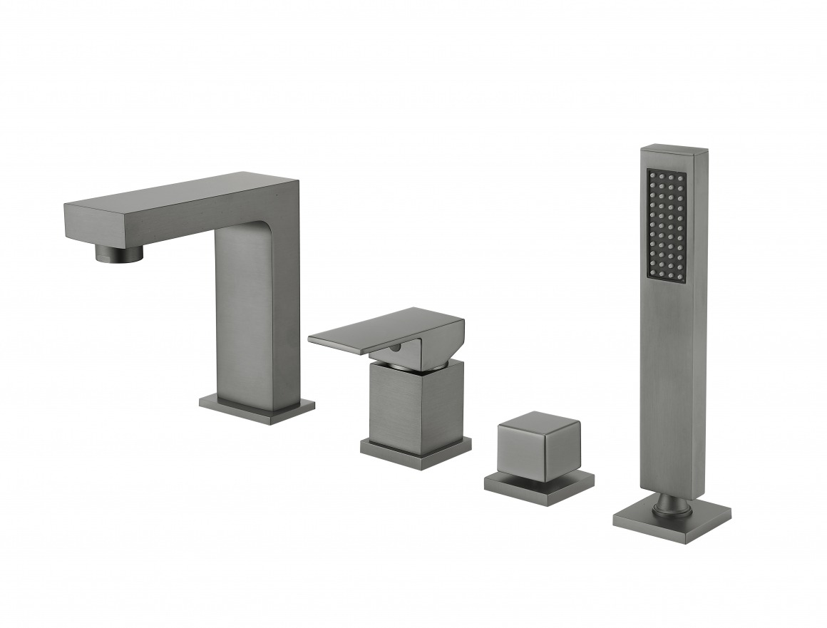 Смеситель для ванны Groсenberg GB6008-1BG, с выдвижным душем, на четыре отверстия, материал латунь, цвет графит.