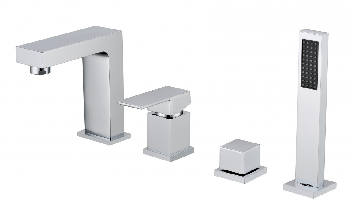 Смеситель для ванны Groсenberg GB6008-1CR, с выдвижным душем, на четыре отверстия, материал латунь, цвет хром.