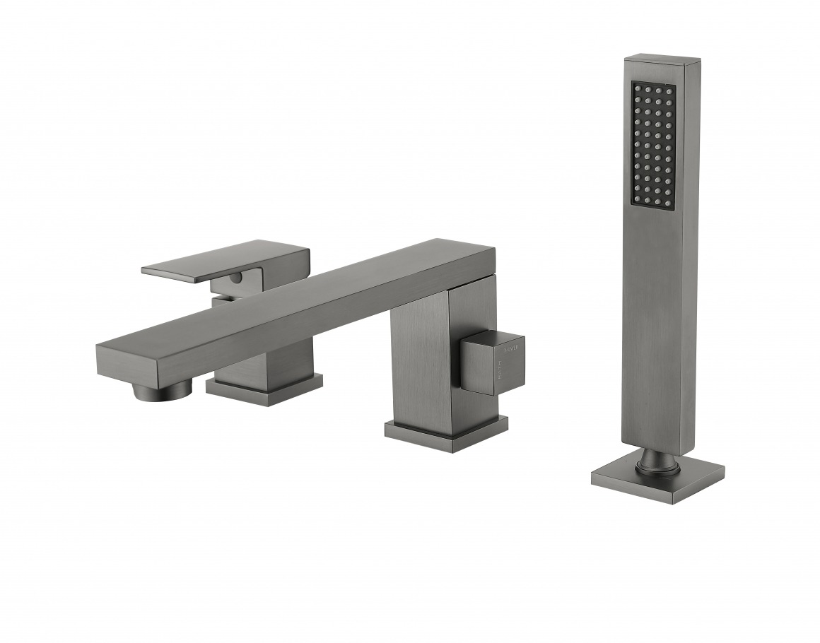 Смеситель для ванны Groсenberg GB6008BG, с выдвижным душем, на три отверстия, материал латунь, цвет графит.