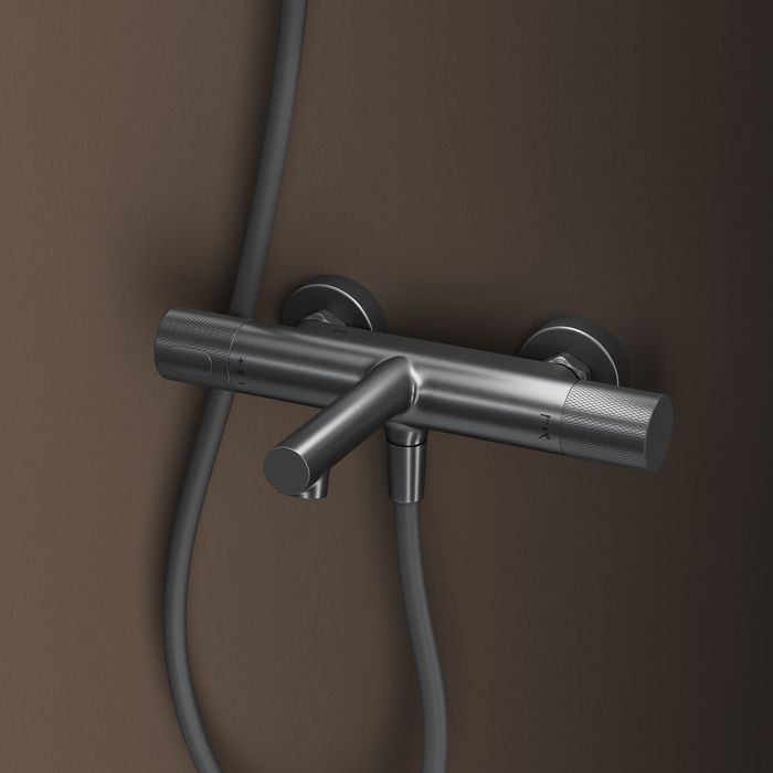 - Смеситель для ванны с термостатом Duna – воплощение актуальных трендов в дизайне смесителей в безупречном исполнении: фрезеровка, модные цвета и фактуры. Без душевых аксессуаров в комплекте.