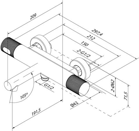 - Смеситель для ванны с термостатом Duna – воплощение актуальных трендов в дизайне смесителей в безупречном исполнении: фрезеровка, модные цвета и фактуры. Без душевых аксессуаров в комплекте.