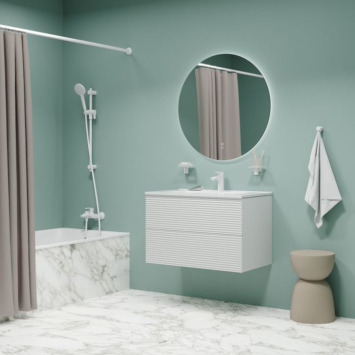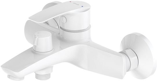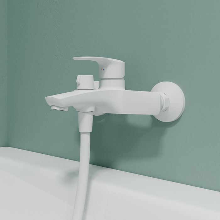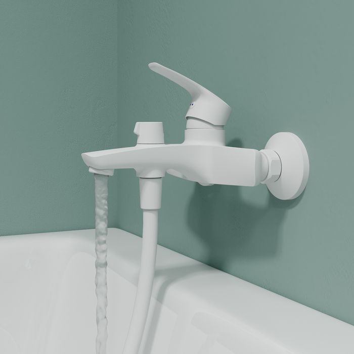 - Смеситель для ванны Ray имеет универсальный дизайн и благодаря трендовому матовому белому цвету станет ярким акцентом современного интерьера ванной.