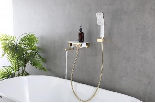 Смеситель для ванны Lemark Mista LM6414WG с душевым гарнитуром, материал - латунь, цвет - белый/золото.