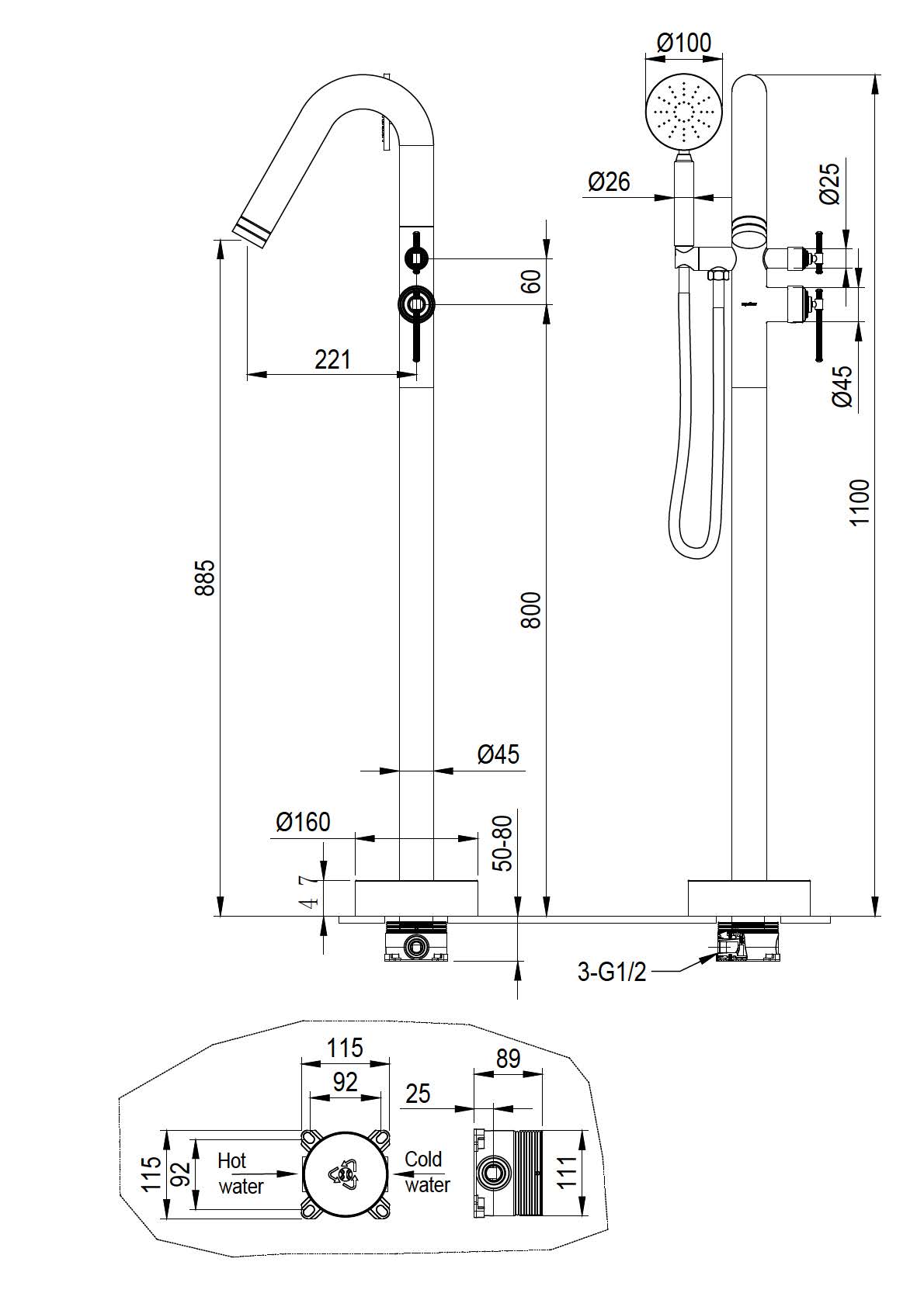 Описание напольный смеситель Boheme 179-MG