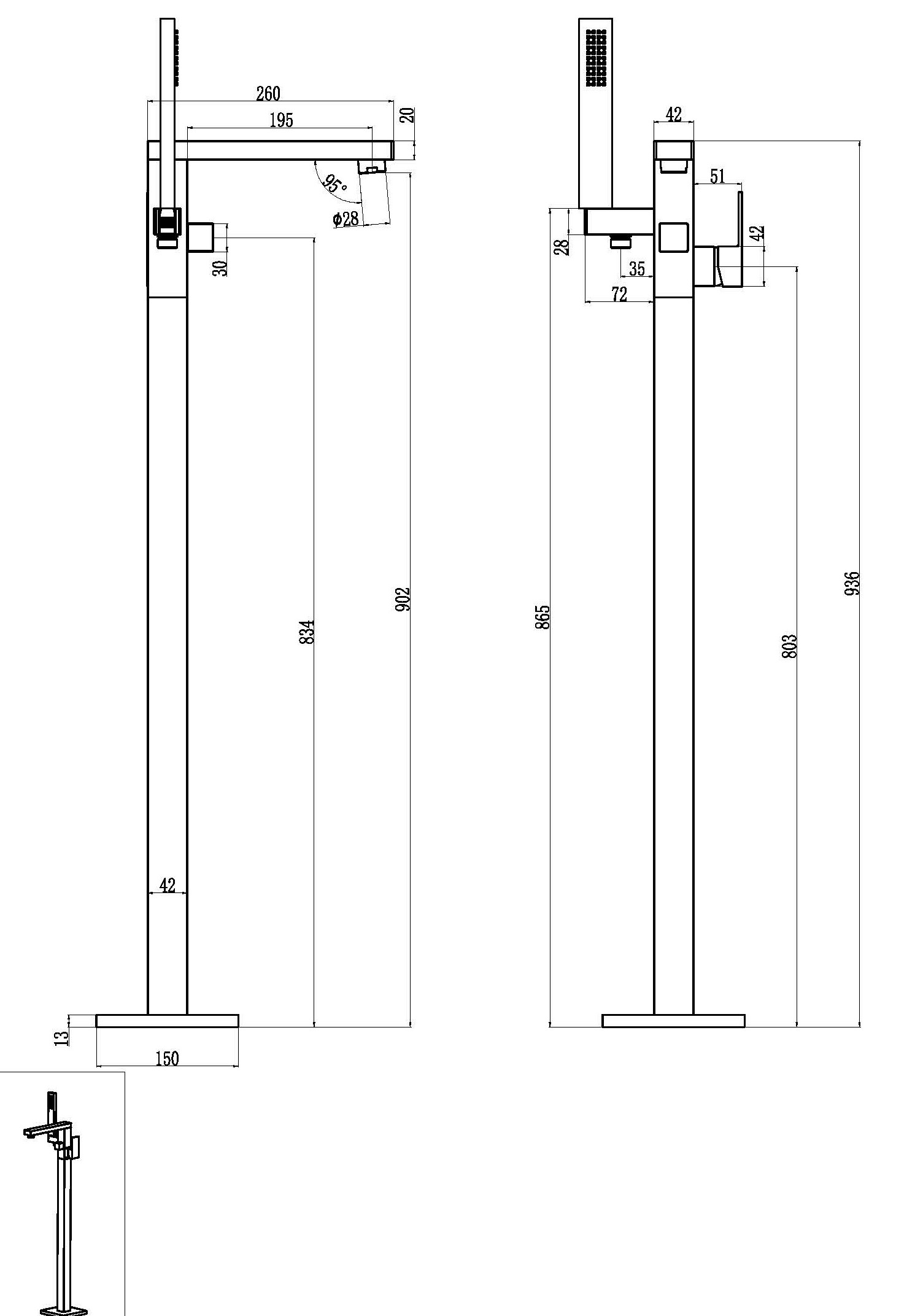 Смеситель для ванны напольный Boheme Qubic 479-MW с душевым гарнитуром, материал латунь, цвет белый.
