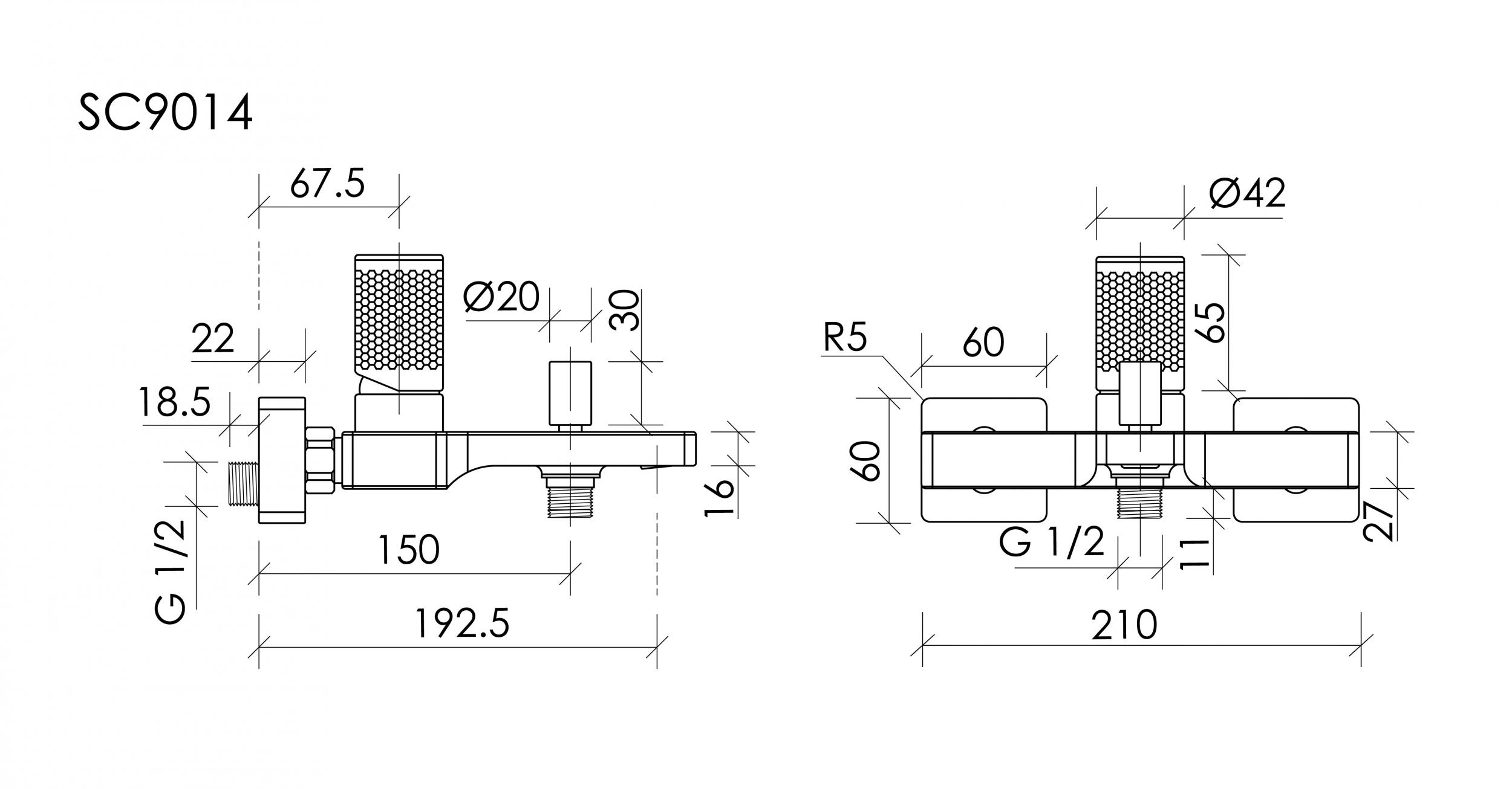- Смеситель для ванны и душа с рифленой ручкой управления