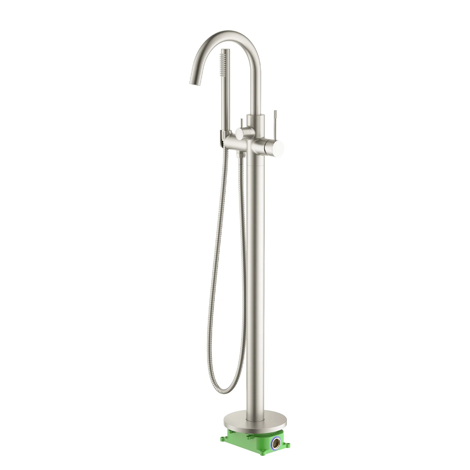 Напольный смеситель Timo Saona 2310 предназначен для установки в ванную комнату. Дизайнерская модель одинаково подходит для классического или современного интерьера и станет идеальным сочетанием практичности и комфорта. Основные преимущества: все коммуникации, крепления спрятаны в полу, видны только декоративные элементы. Установить смеситель можно в любом месте. Статичная конструкция не требует ремонта ввиду отсутствия подвижного механизма. Смеситель управляется джойстиком, плавно регулирующим температуру воды и напор. Переключение режимов излив / ручная лейка осуществляется дивертором расположенном на корпусе смесителя.