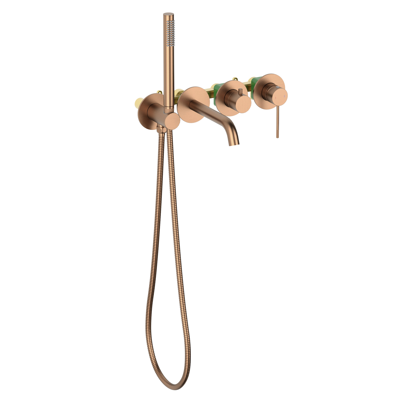 Смеситель для ванны Timo Saona 2314/19YSM с душевым гарнитуром и скрытой частью в комплекте, материал латунь, цвет розовое золото.