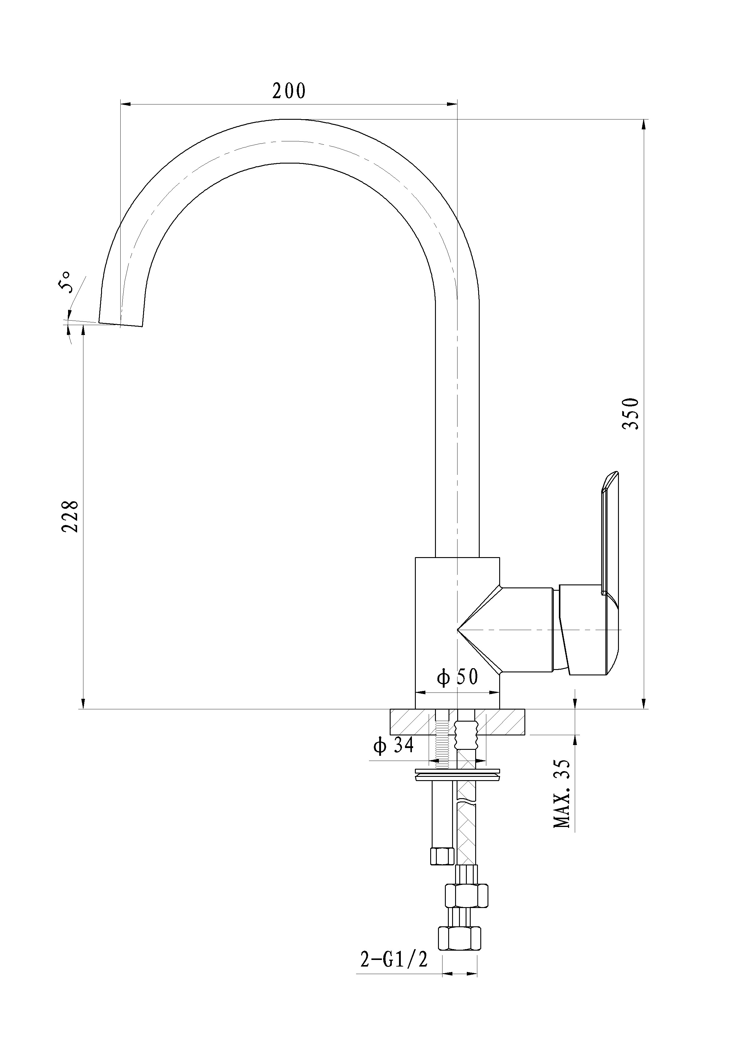 Описание смеситель для кухни Wonzon & Woghand WW-192101-CR