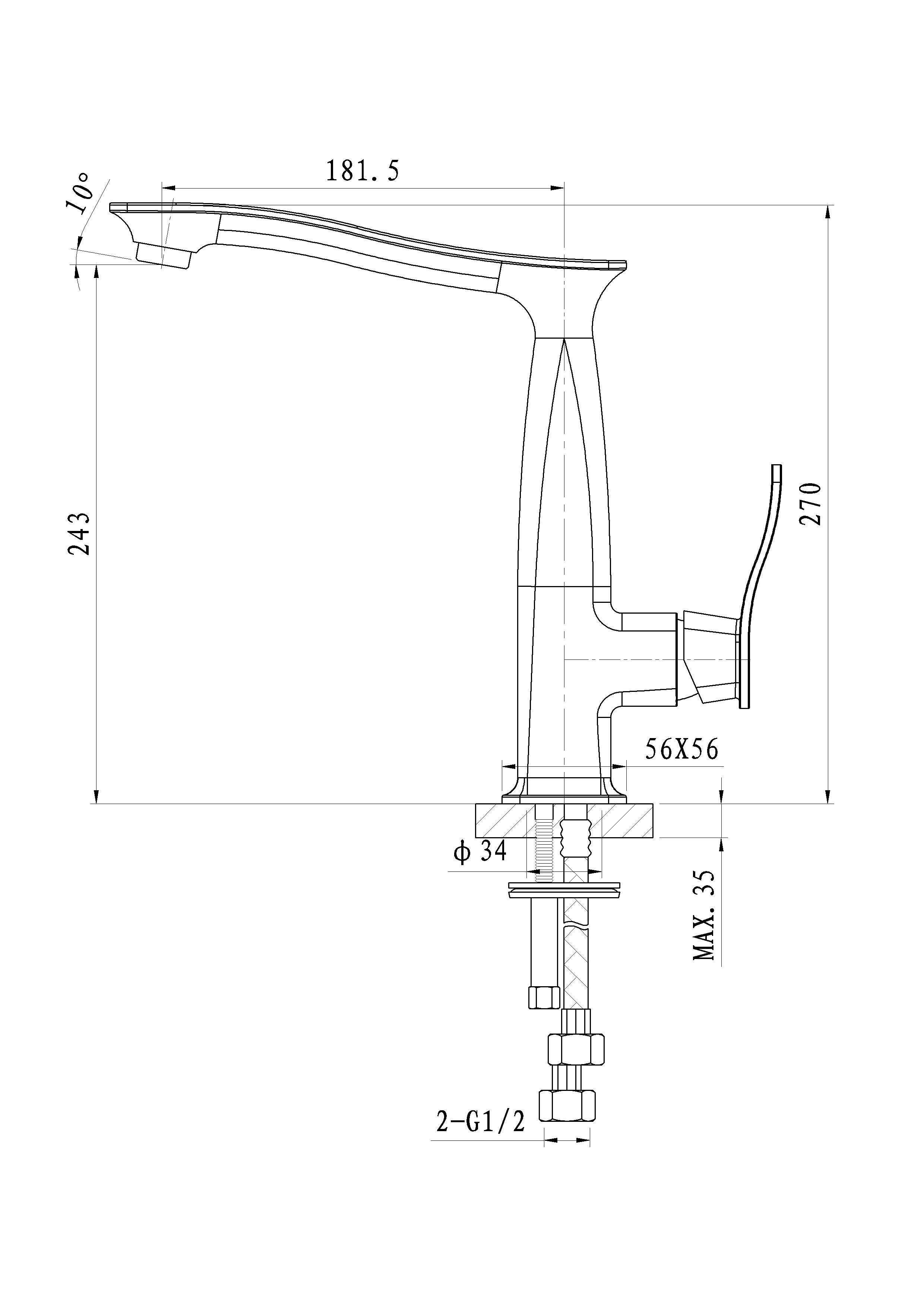 Описание смеситель для кухни Wonzon & Woghand WW-182101-CR