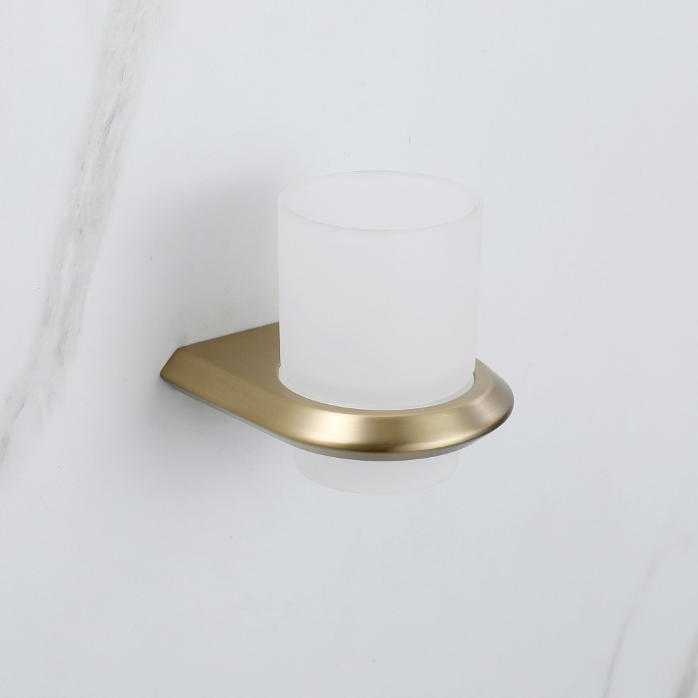 Стакан для зубных щеток Abber Nord AA1556G с настенным держателем, материал нержавеющая сталь/стекло, цвет золото матовое.