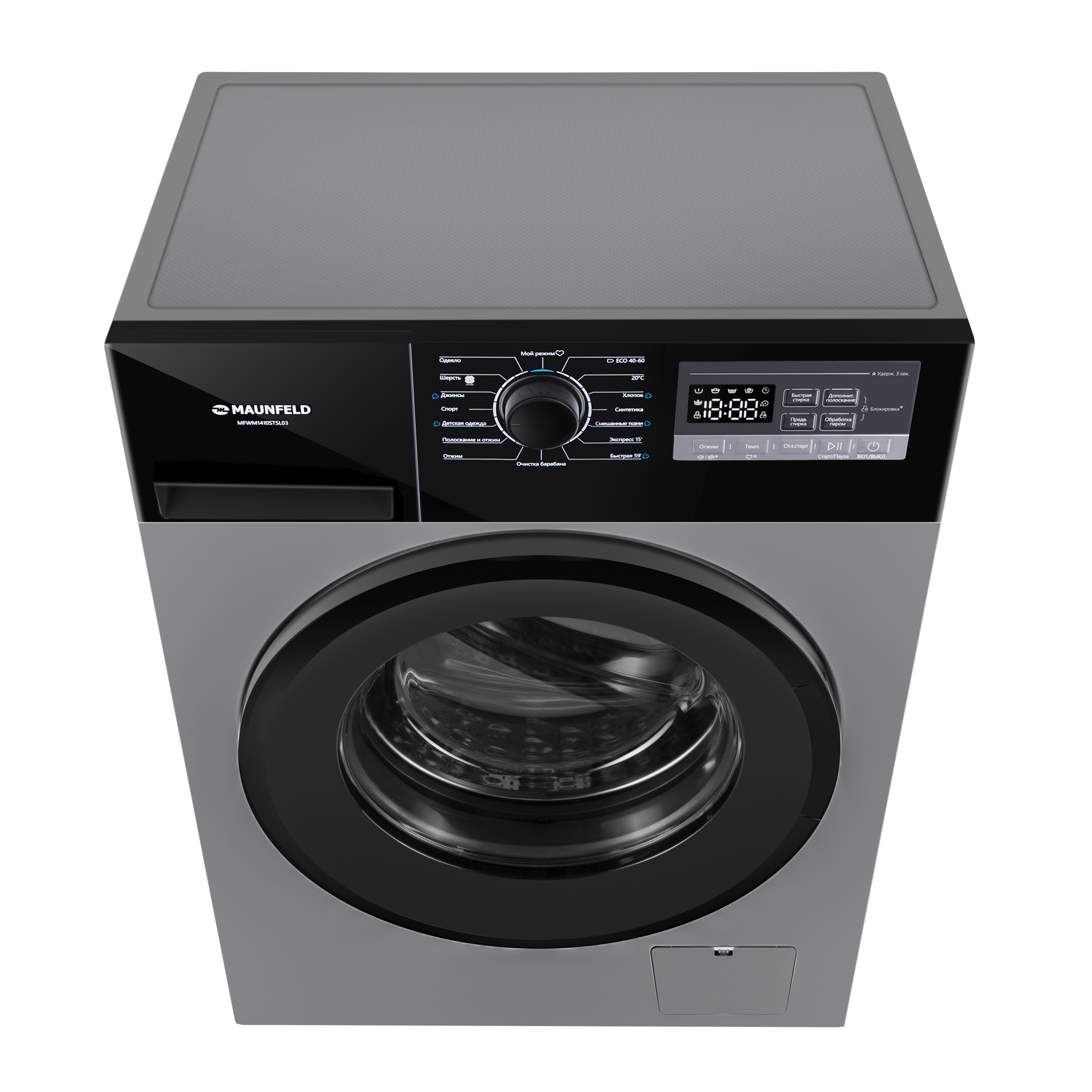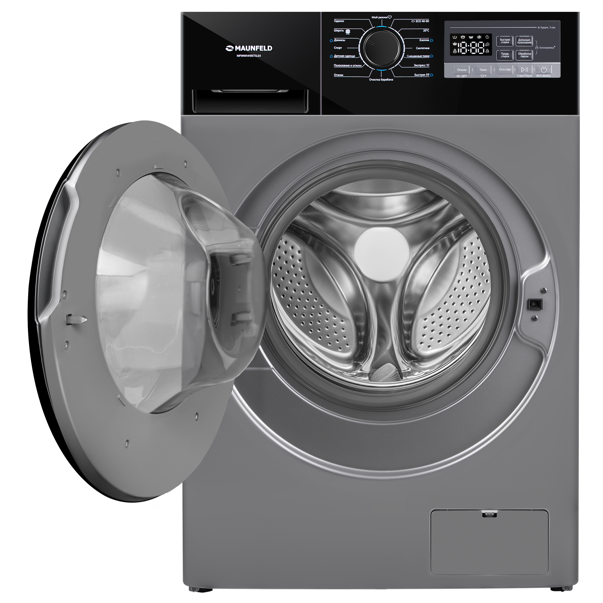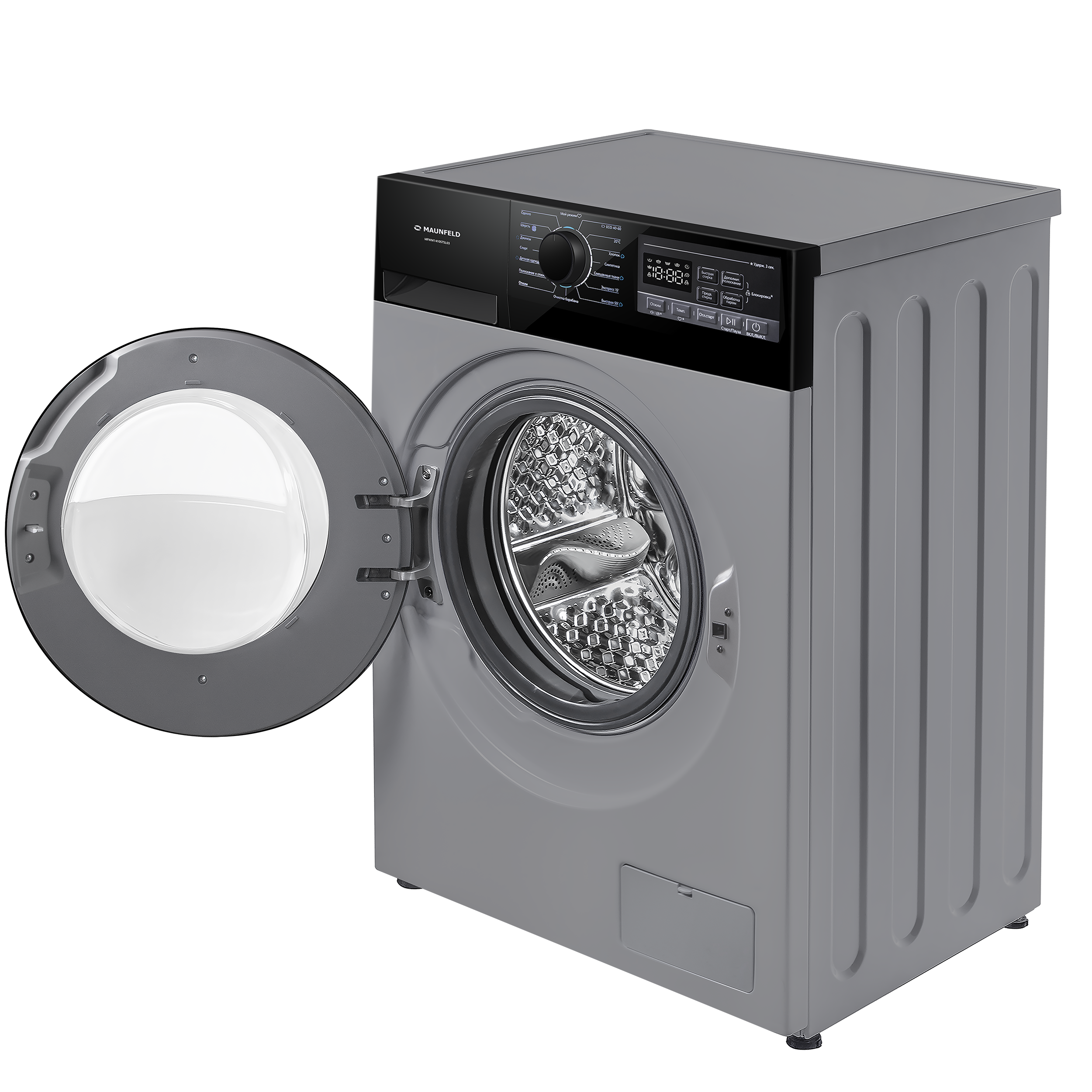 Стиральная машина c инвертором и паром Maunfeld MFWM1410STSL03, цвет серебристый.
