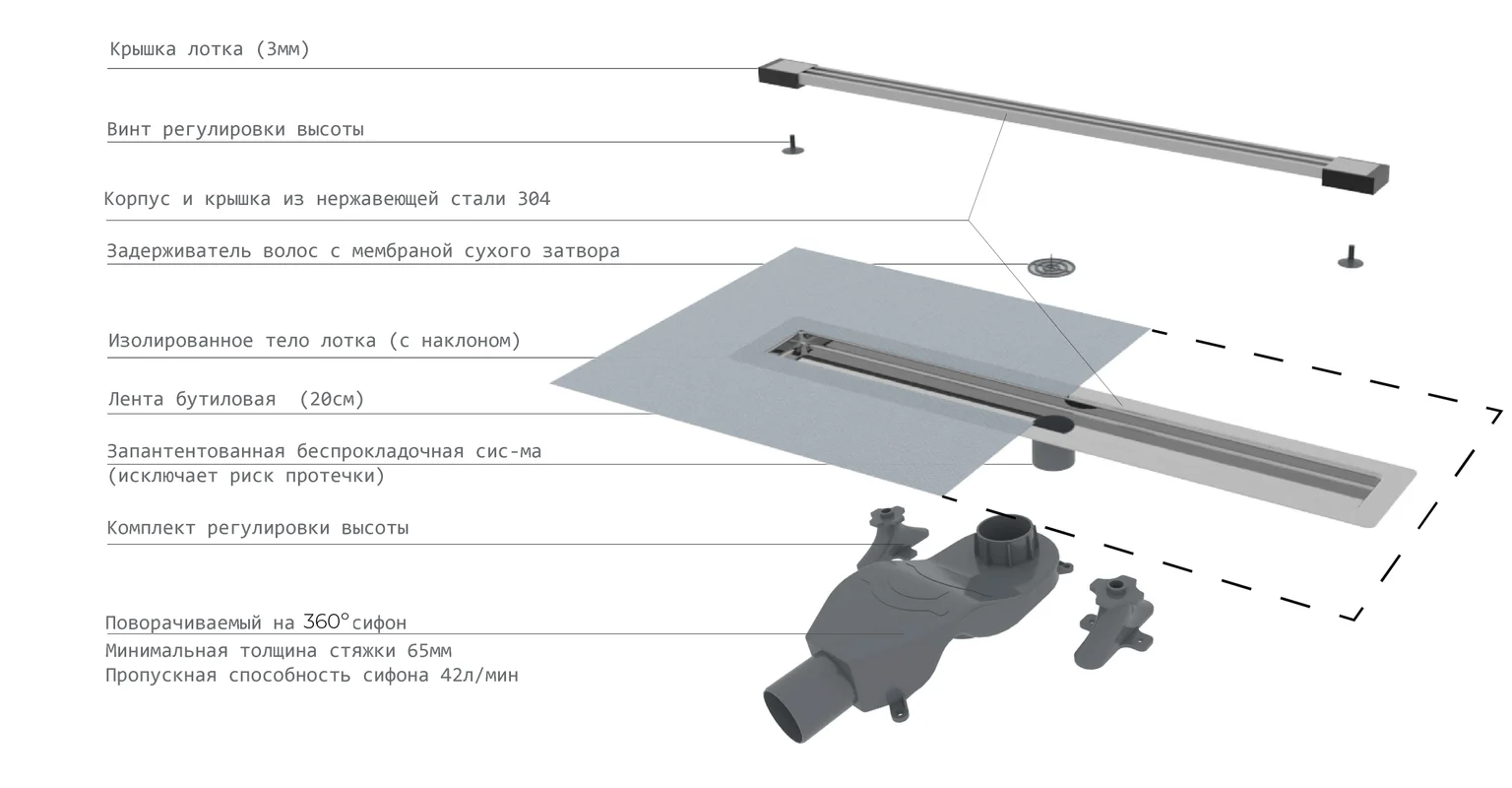 Характеристики трап щелевой Boheme (981-60-GM)