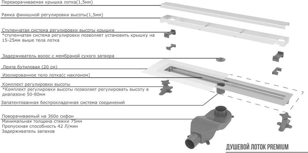 Трап Boheme Premium Linear 80 см 982-80-B, чёрный (под плитку)