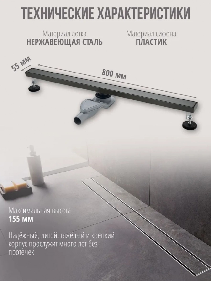 - В комплект входит трап, ножки, сифон, набор для монтажа.