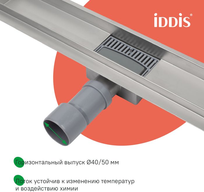Душевой лоток IDDIS® с горизонтальным выпуском в цвете матовый хром предназначен для отведения воды в канализацию из зоны принятия душа. Он заменит традиционные поддоны с бортиками, предлагая универсальный дизайн решетки и возможности для создания стильного интерьера ванной комнаты. Длина решетки — 500 мм; подходит для плитки толщиной до 12 мм.