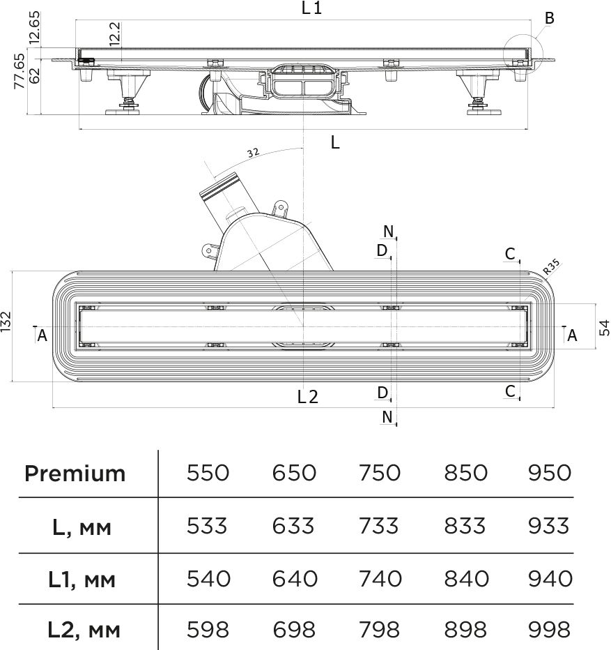 Трап Pestan (BETTOSERB) Confluo Premium Line 55 см 13100003, нержавеющая сталь (под плитку)