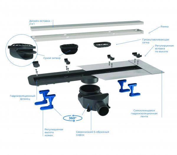 - Материал нержавеющая сталь AISI 304 SS дизайн-вставка, рамка, ABS корпус, PP переходник, сифон, грязеулавливающая сеточка