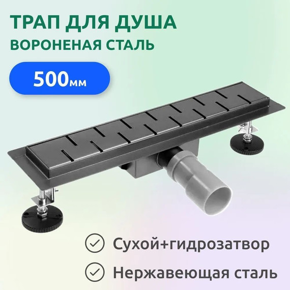 Трап TIM 50 см BAD475002GY, материал нержавеющая сталь, цвет вороненая сталь.