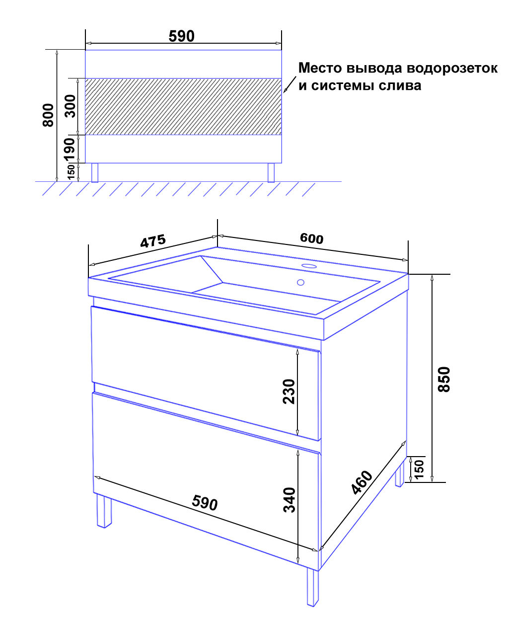 Тумба напольная с раковиной Azario Мила 60Н см CS00085830