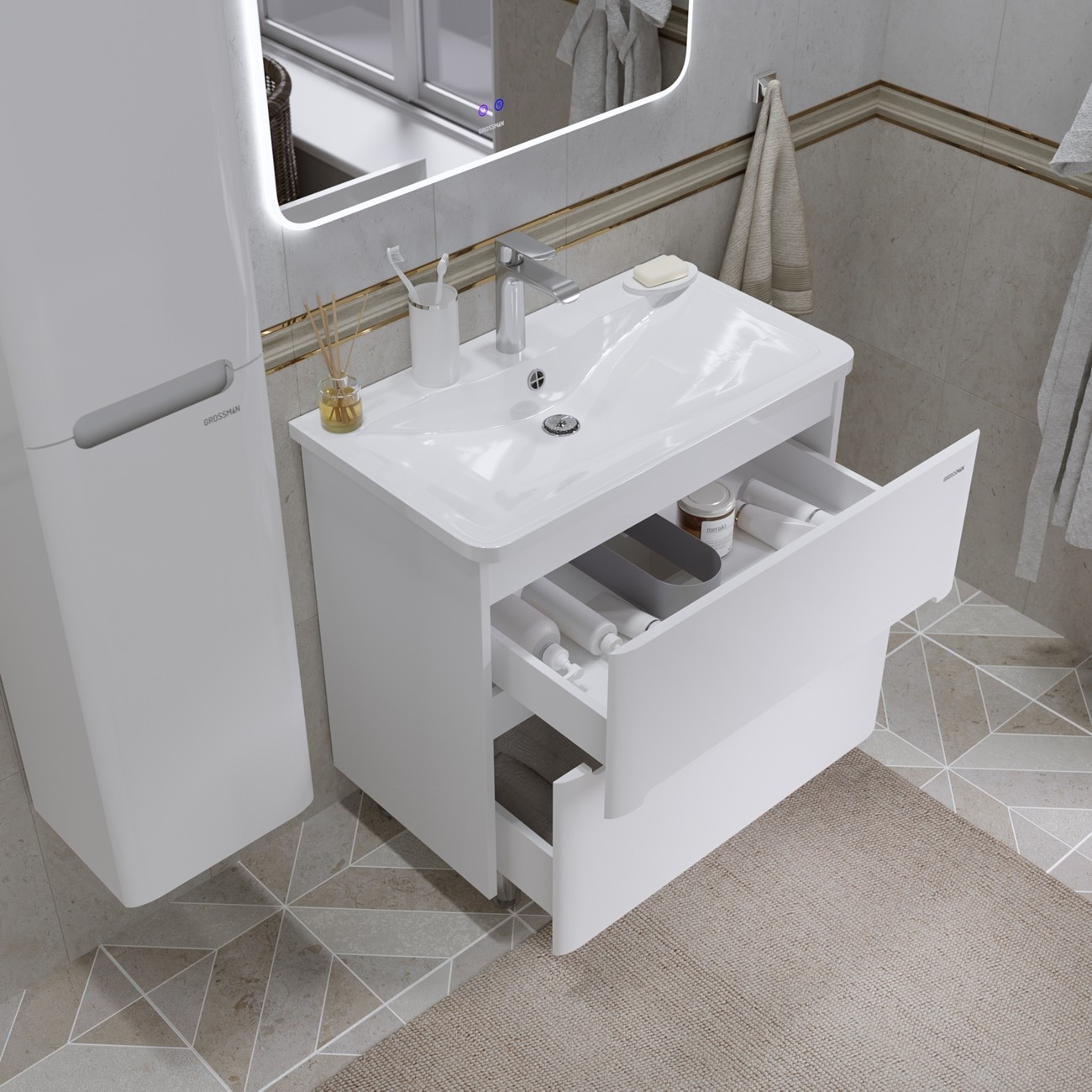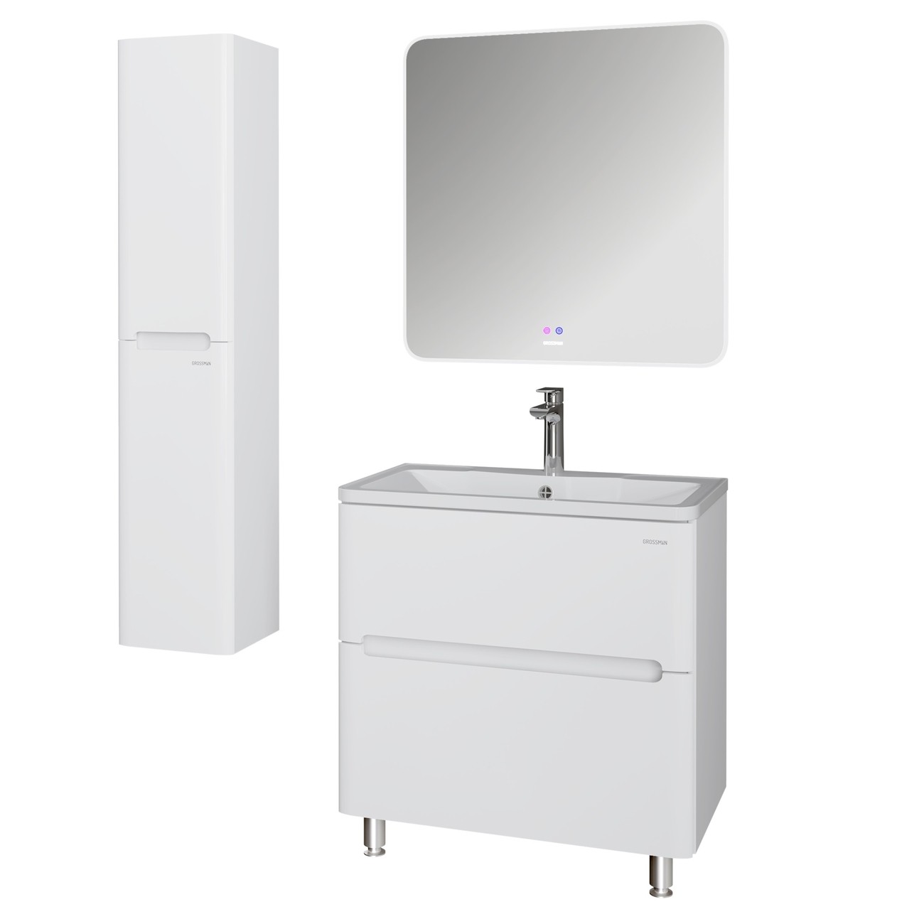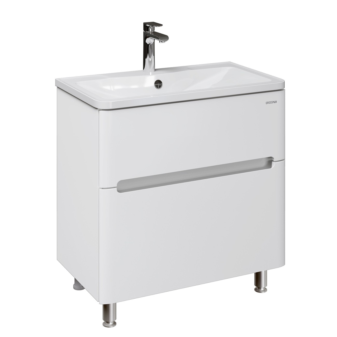 Тумба напольная Grossman АДЕЛЬ-НОРМА 80 см 108023 с раковиной Адель 80 см, цвет белый глянец.