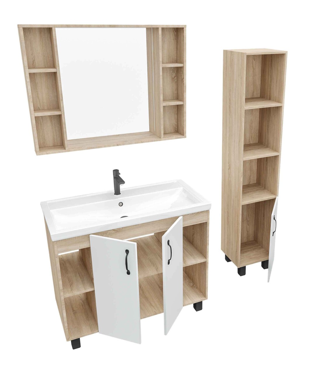 Тумба напольная с раковиной Grossman Флай 100 см 101001, дуб сонома/белая