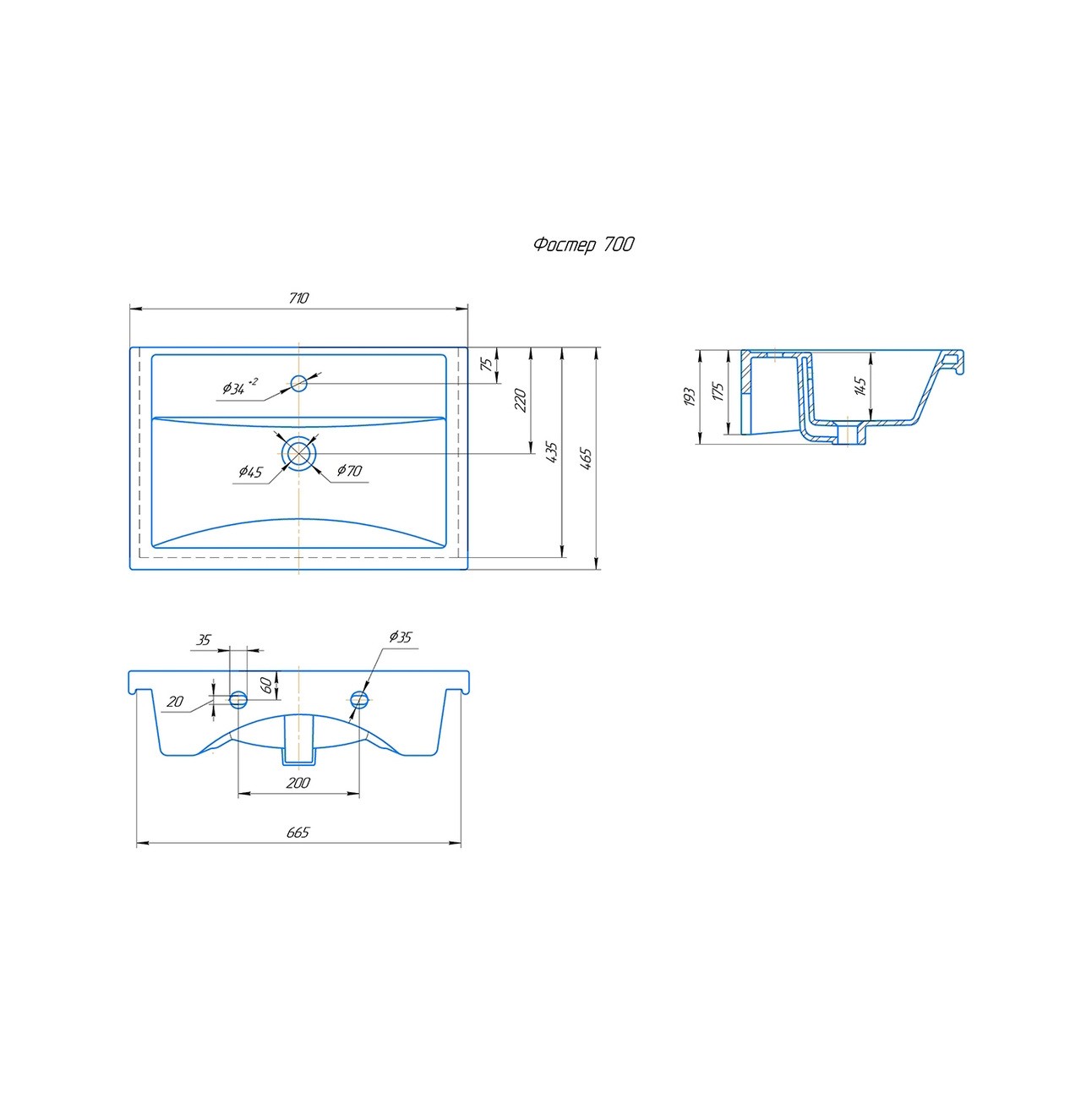 Тумба напольная Grossman Нео 70 см с раковиной Фостер 70 см, цвет белый.