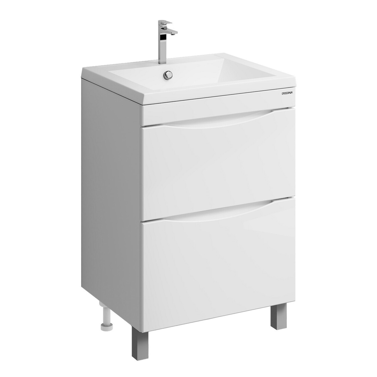 Тумба напольная Grossman Виста 58 см с раковиной Alice 58 см, цвет белый глянец.