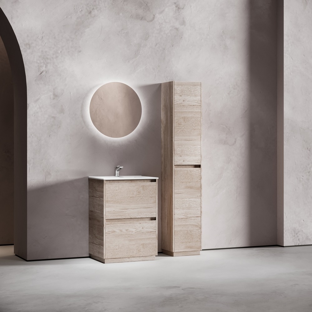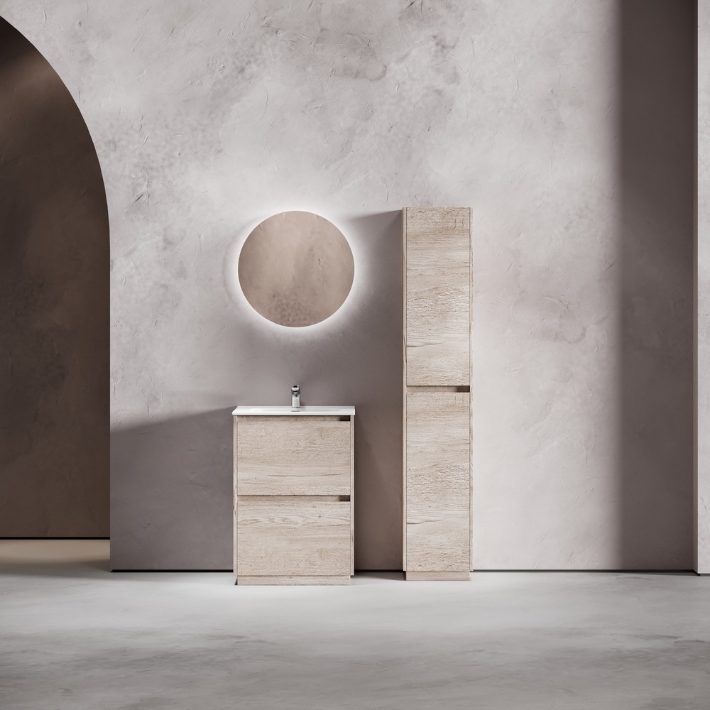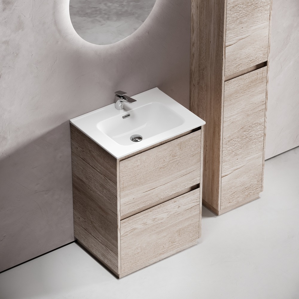 Тумба напольная с раковиной Sancos Libra Floor 60 см LB60FEG с доводчиком и раковиной Element CN7001, цвет дуб галифакс натуральный.