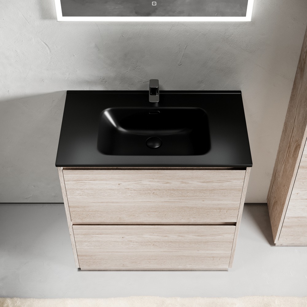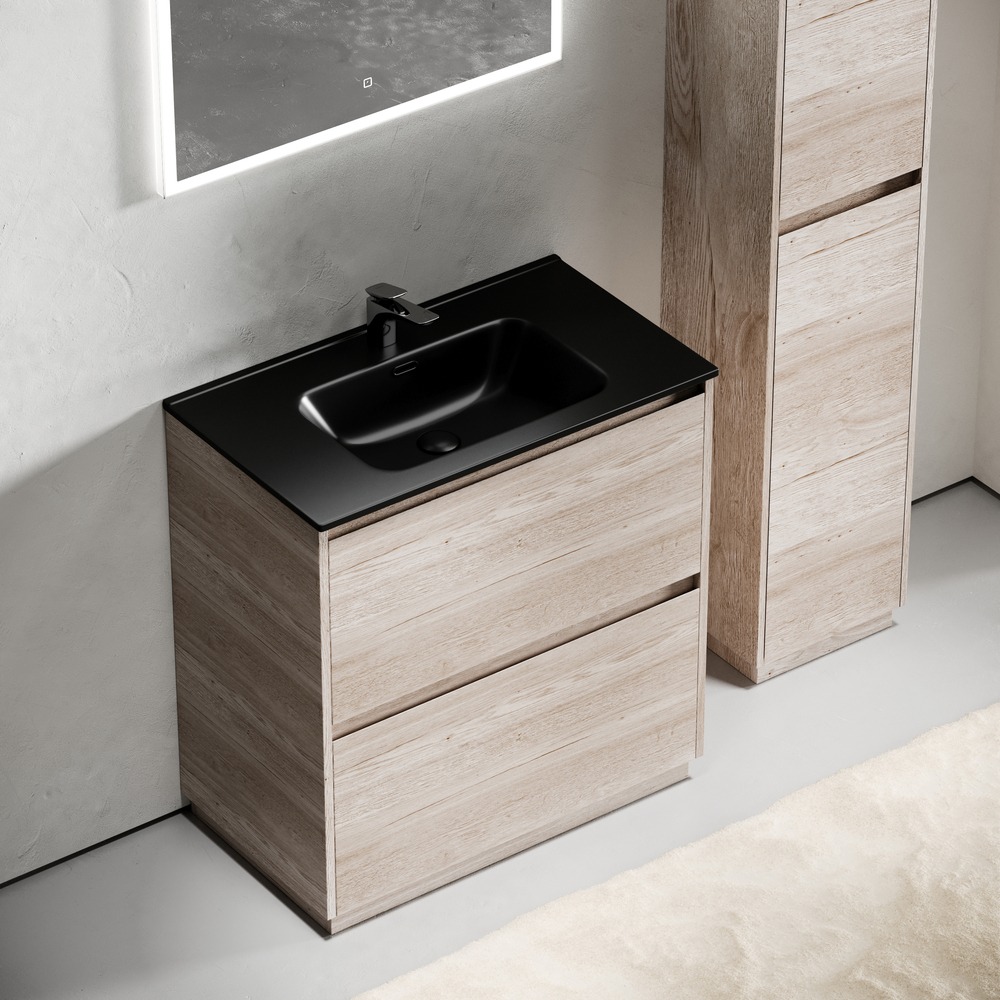 Тумба напольная с раковиной Sancos Libra Floor 80 см LB80FEG с доводчиком и раковиной Element CN7005MB, цвет дуб галифакс натуральный.