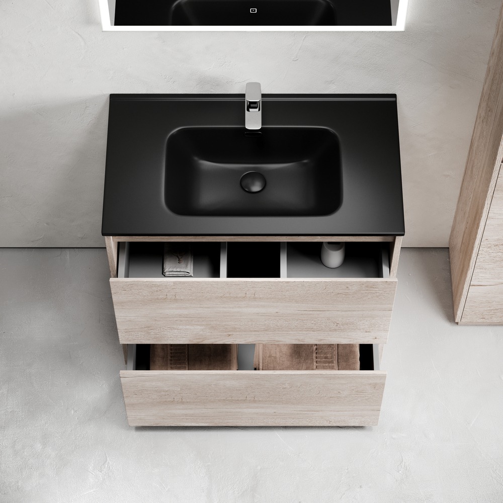 Тумба напольная с раковиной Sancos Libra Floor 80 см LB80FEG, дуб галифакс натуральный (раковина Element CN7005MB)