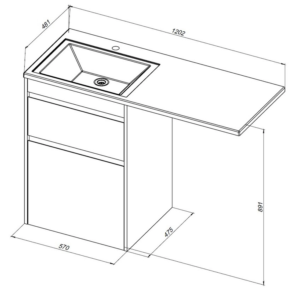 Тумба напольная с раковиной-столешницей Aquanet Токио 120 см L 00333648, дуб веллингтон