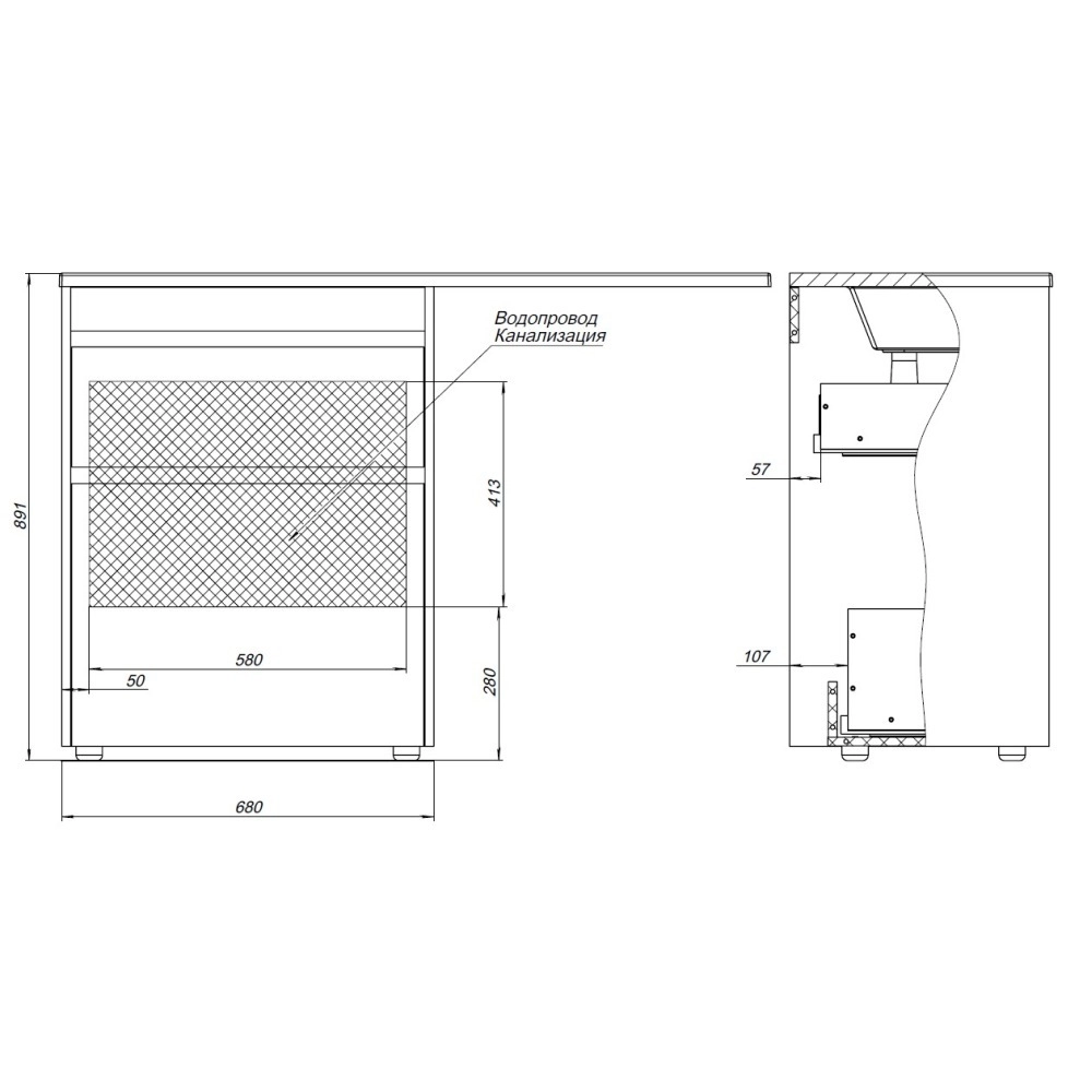 - Тумба установлена на регулируемые опоры высотой 27 мм, с возможностью регулировки до 15 мм