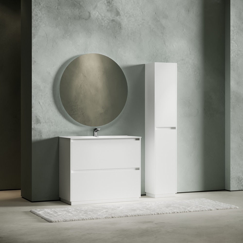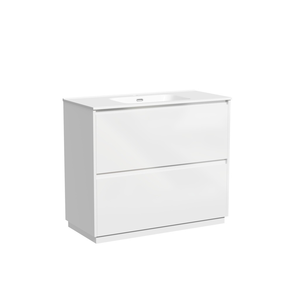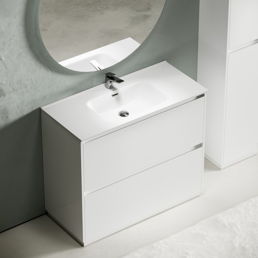 Тумба напольная Sancos Libra Floor 100 см LB100FW с доводчиком и раковиной-столешницей Element CN7003, цвет белый глянец.