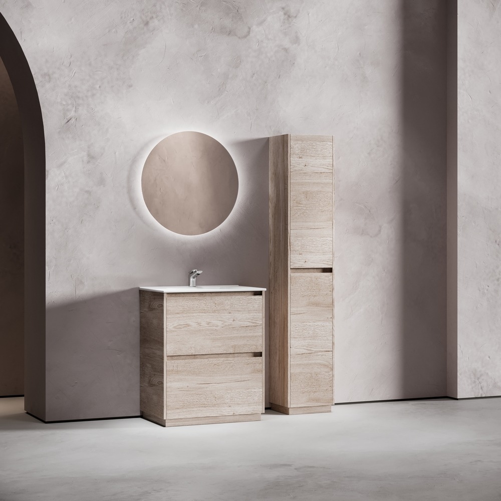 Тумба напольная Sancos Libra Floor 70 см LB70FEG с доводчиком и раковиной-столешницей Element CN7007, цвет дуб галифакс натуральный.