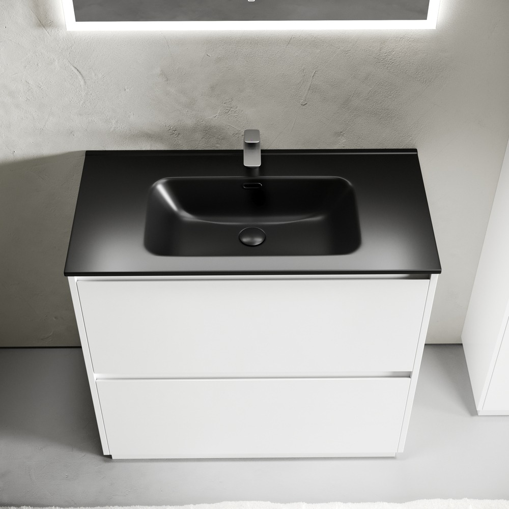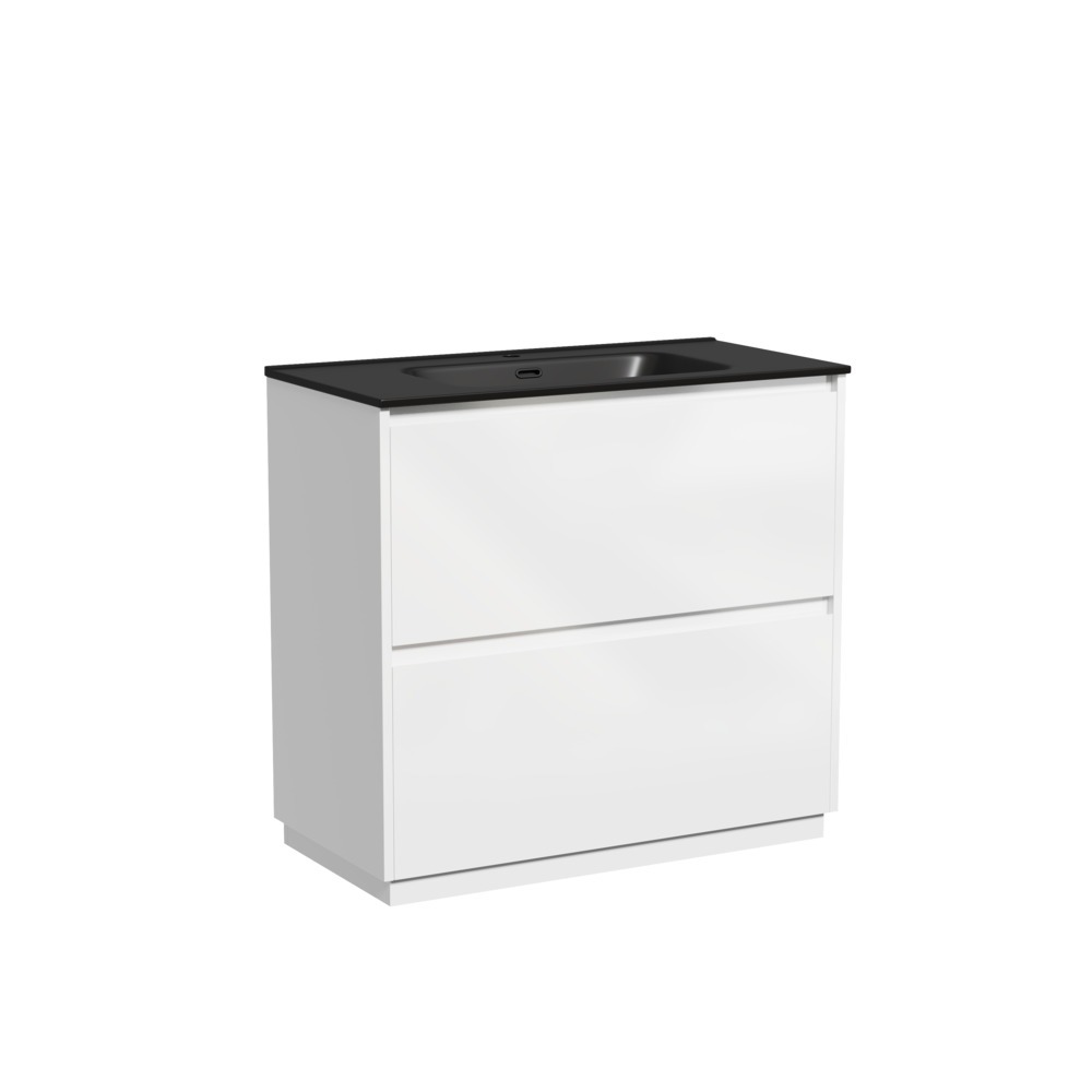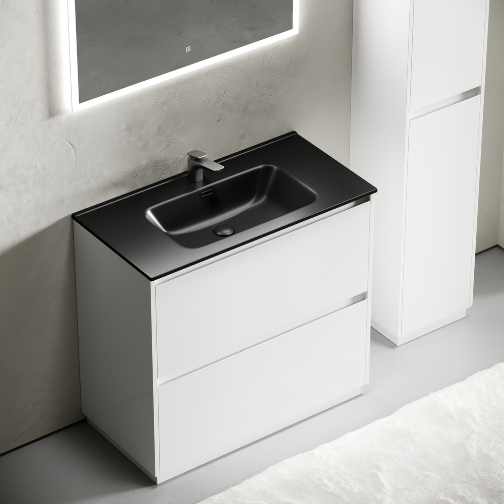 Тумба напольная Sancos Libra Floor 90 см LB90FW с доводчиком и раковиной-столешницей Element CN7002MB, цвет белый глянец.