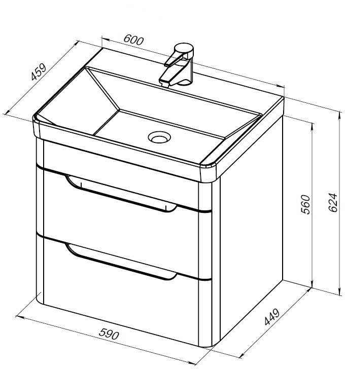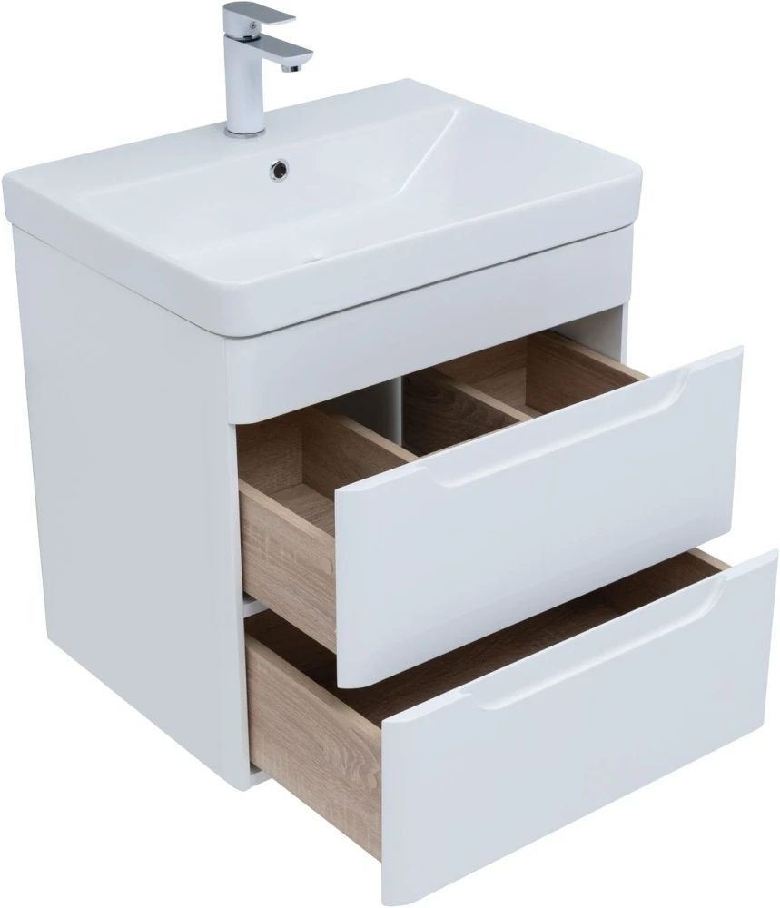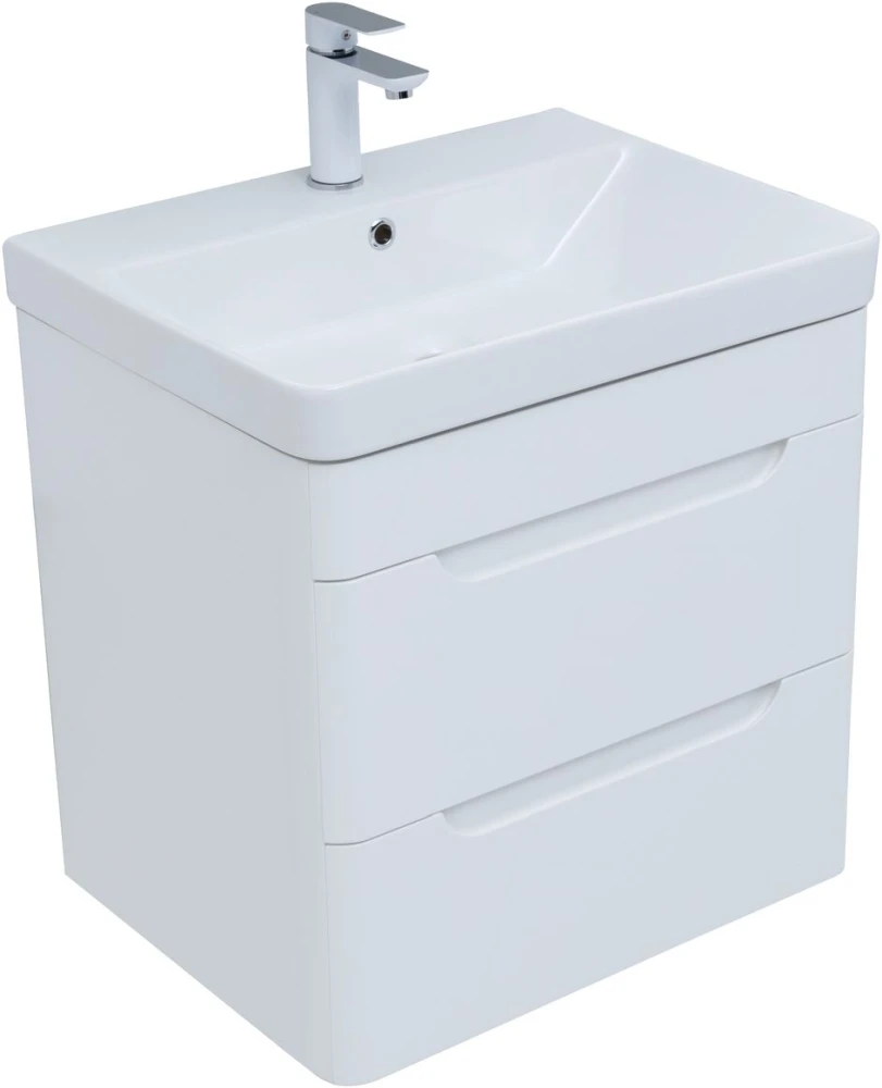 Тумба подвесная Aquanet София 60 см с раковиной Aquanet Sanovit Luxury 60 см 11060-KL, 2 выдвижных ящика, цвет белый глянец.