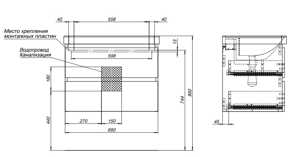 Характеристики тумба с раковиной Aquanet (00308333+00301804)
